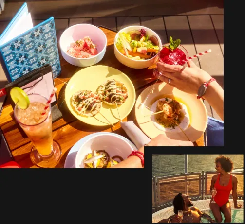 From truffle gnocchi with affogato for dessert at Extra Virgin and perfectly-zested hamachi crudo at The Wake, to meat-grilling accoutrements at our first-to-sea Korean BBQ spot, Gunbae β our 20+ unique eateries with menus designed by a Michelin-starred chef collective use fresh ingredients to create made-to-order (and always-included) food. Never stuffy and always welcoming, no matter your craving or your vibe, thereβs a restaurant on board that will suit you.